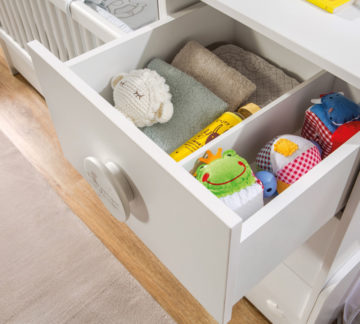Odlično se kombinira z omarami, nočnimi omaricami in ostalimi kosi pohištva iste linije Baby Cotton. Vso pohištvo se proizvaja v skladu s TUV standardom, kar pomeni, da je za zaščito, zdravje in ergonomičnost samih izdelkov maksimalno poskrbljeno. Plastični deli, ki se uporabljajo, so izdelani iz kvalitetne ABS plastike (enako kot LEGO kocke).