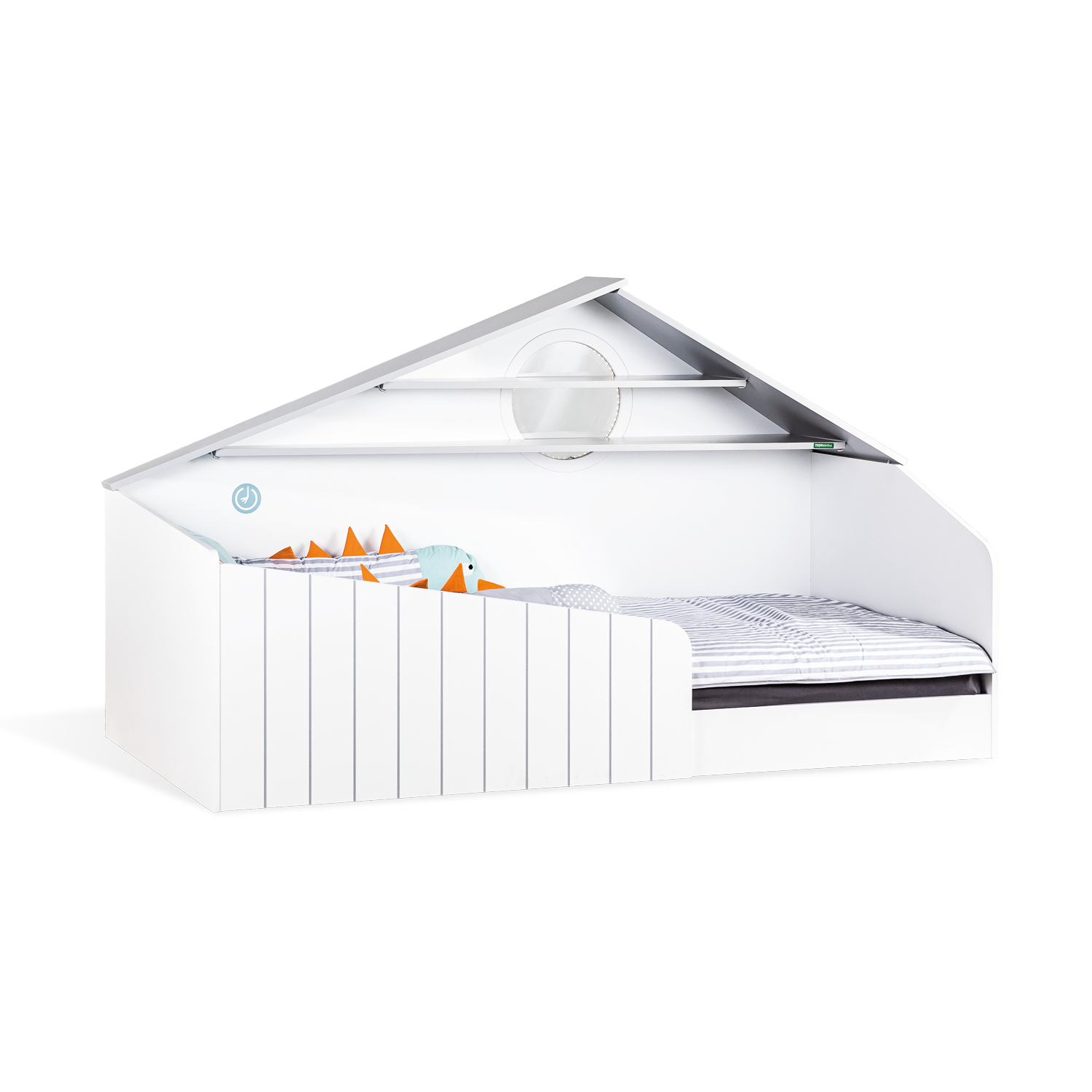 Postelja Ptička je nadvse zanimivo in udobno oblikovan kos pohištva. Odlikuje se z nežnim in umirjenim videzom. Okvir, izdelan iz iverne plošče E1 kakovosti, vsebuje tudi nekaj polic. Robovi so zaščiteni z ABS robnim trakom.