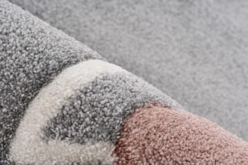 Otroška preproga Happy HAP 307 Multi prinaša elegantno cvetlično zasnovo, ki je kot nalašč za dodajanje mehkobe in barvitega pridiha v otroško sobo. Na sivi podlagi se ob robovih preproge vijejo cvetlice in listi v nežnih odtenkih roza, bež in sive, kar ustvarja očarljiv okvir, ki obogati prostor z naravnimi motivi in toplino.