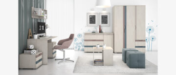 V sestav otroške sobe je vključeno pohištvo, ki je navedeno spodaj (širina, globina, višina):