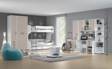 V sestav otroške sobe je vključeno pohištvo ki je navedeno spodaj (širina, globina, višina):