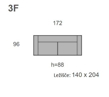 - 3F trosed 172 x 96 x 88 cm Ležišče 140 x 204 cm