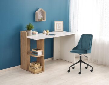 - Pisalna miza z belo mizno ploščo in hrast poličnikom