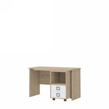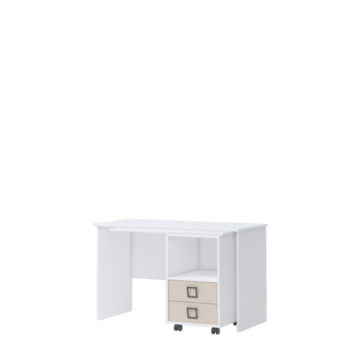 Pisalna miza Kiki RS je vsestranska in uporabna tako za mladinske in kot za otroške sobe. Po potrebi jo lahko s pomočjo predalnika na kolesih in dodatne plošče povečate v večjo delovno površino. Pisalno mizo lahko kombinirate z ostalimi elementi iz programa Kiki in tako dosežete večjo prilagodljivost in boljšo izkoriščenost prostora, saj izbirate med velikim številom elementov in barvnih kombinacij. Vsebuje dva predala, ki se tiho zapirata (Soft-Close). Narejena je iz kvalitetne oplemenitene plošče priznanega proizvajalca, ki skrbi, da so materiali preverjene kakovosti in neškodljivi, ter zato primerni za uporabo v otroških sobah. Vsi robovi so zaščiteni z ABS trakom.
