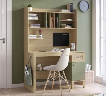 - Pisalna miza vključuje 1 predal in 1 vrata, ki zagotavljata dovolj prostora za shranjevanje.