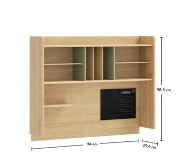 Pisalna miza Loof s študijsko enoto je popolna kombinacija modernega dizajna, funkcionalnosti in kakovostne izdelave. Njena premišljena zasnova združuje estetsko privlačnost in praktičnost, zaradi česar je idealna izbira za mladinske ali delovne prostore.