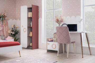 Pisalna miza iz kolekcije Magic za mladinske in otroške sobe združuje sofisticiran dizajn z visoko funkcionalnostjo, ustvarjena za spodbujanje študija, ustvarjalnosti in organizacije v elegantnem in čarobnem okolju. Ta kakovostna pisalna miza je opremljena z vsemi potrebnimi lastnostmi za sodobno delovno postajo, vključno z dodatno poličko za knjige ali dekorativne predmete, kar ustvarja idealno kombinacijo praktičnosti in estetike.