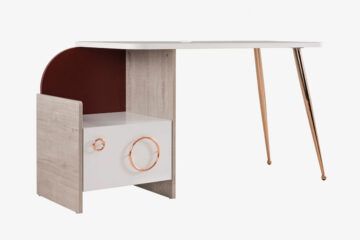 - Okrasni zlati ročaji: Eleganti ročaji v zlati barvi dodajajo pridih razkošja in sofisticiranosti mizi, hkrati pa zagotavljajo enostavno odpiranje in zapiranje predala.