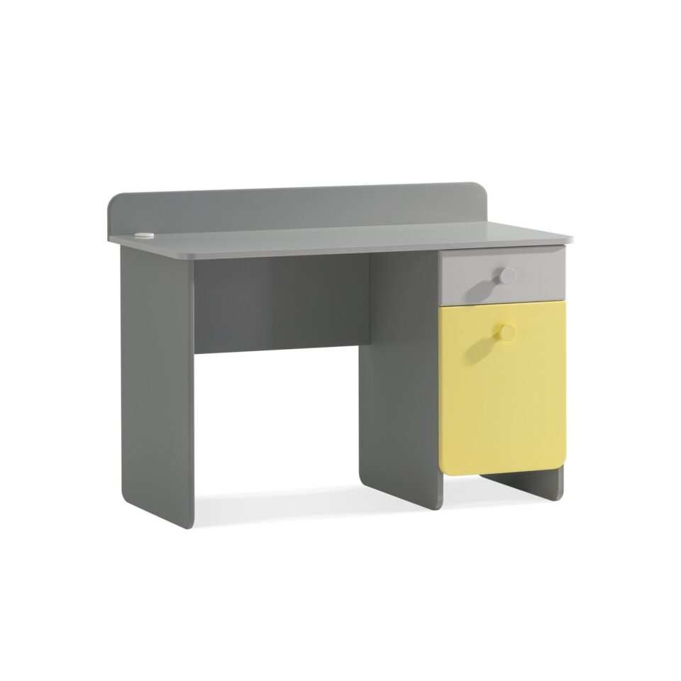 Delovna površina je opremljena z integrirano USB polnilno postajo, ki omogoča enostavno in sodobno uporabo mobilnih naprav ter dodatkov. Predal in vratca imajo mehko zapiranje s pomočjo sistema zaviranja drsnikov in tečajev, kar zagotavlja tiho in varno uporabo. Predal, izdelan iz 18 mm in 8 mm iverne plošče, omogoča nosilnost do 25 kg. Trpežni ABS ročaji so prijazni do otroških rok in hkrati izjemno vzdržljivi.