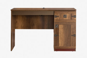 Pisalna miza Mornar, del kolekcije otroških in mladinskih sob Mornar, je oblikovana z namenom spodbujanja kreativnosti in študijske učinkovitosti, hkrati pa v prostor vnaša duh pustolovščine. Z dodatno omarico in uporabo toplih barv lesa ter tematskih UV digitalnih tiskovin, ta pisalna miza služi kot funkcionalno in estetsko osrednje mesto v sobi mladega raziskovalca ali pustolovca.