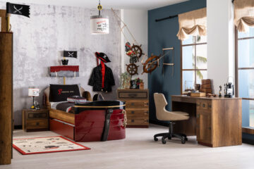 • Barve: Uporaba toplih barv lesa ne le izboljša kakovost bivanja z ustvarjanjem prijetnega in toplo občutka v prostoru, ampak tudi odraža tematiko gusarjev in pustolovščin, ki je centralna za kolekcijo Mornar.