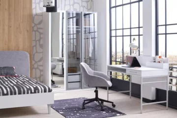 Elegantna in funkcionalna miza, ki mladim omogoča produktivno učenje in ustvarjanje v urejenem prostoru.