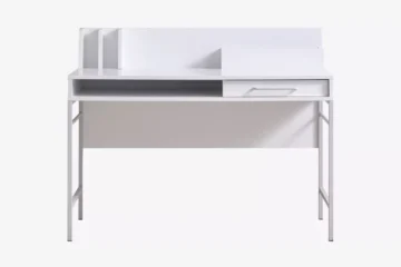 - Dvignjena zadnja stena: Omogoča dodatno shranjevanje knjig in pripomočkov ter ustvarja urejeno delovno površino