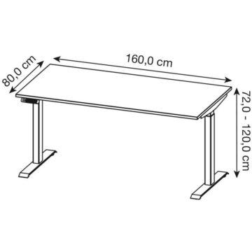 - Dimenzije: Širina 160 cm, globina 80 cm, Višina nastavljiva 72 – 120 cm
