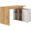 Pisalna miza Adrano (120 x 90 x 74 cm) združuje funkcionalnost in estetsko dovršenost v enem kosu. Kombinacija svetlega hrastovega dekorja in kašmir barve ustvarja sodoben, a topel videz, ki se odlično poda tako v domačo pisarno kot v mladinsko sobo. Zahvaljujoč stranskemu prostoru s policami ponuja dodatno površino za shranjevanje map, knjig ali pisarniških pripomočkov.