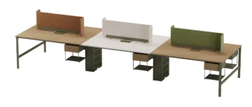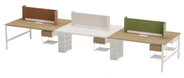 - Sredinska pregrada: Vključena v ceno, izdelana iz tekstila, omogoča zasebnost in organizacijo delovnega prostora. Na voljo je v različnih barvah in oblikah, da se popolnoma ujema z vašim pisarniškim slogom.