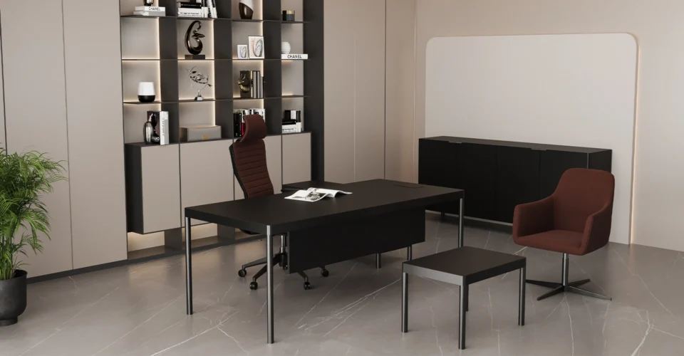 Pisarniška miza Minimal z dodatno omarico in pregrado združuje funkcionalnost, estetiko in vzdržljivost, zaradi česar je idealna rešitev za sodobne pisarne. Ta model vključuje praktično omarico za shranjevanje, ki omogoča še boljšo organizacijo delovnega prostora.