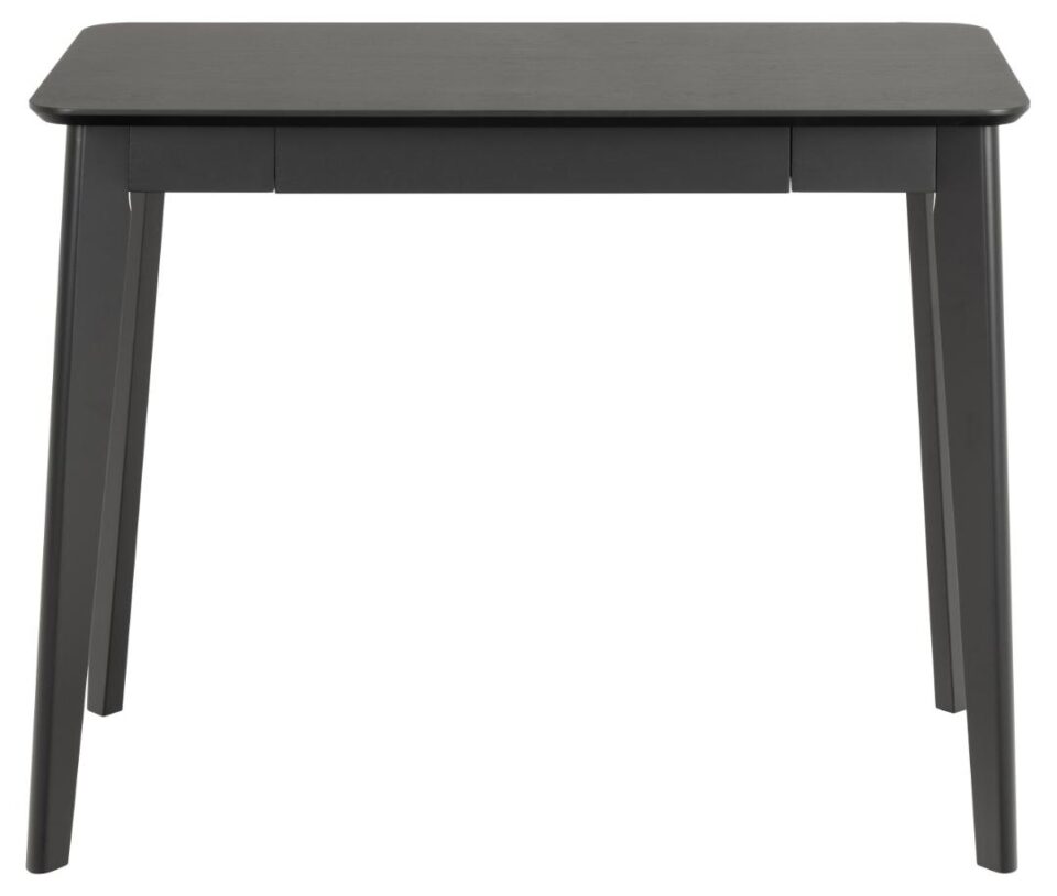 Roxby pisarniška miza, pravokotna, z vrhnjo površino iz mat črnega lakiranega furnirja hrasta, predalom in podstavkom iz mat črnega lakiranega lesa gumijevca, dimenzije D 100 x Š 50 x V 75 cm.