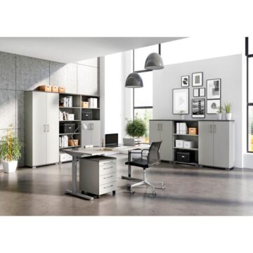 Pisarniška omara Profi je idealna za domače pisarne, sejne sobe ali profesionalna delovna okolja, kjer je potrebna prostornost in organizacija.
