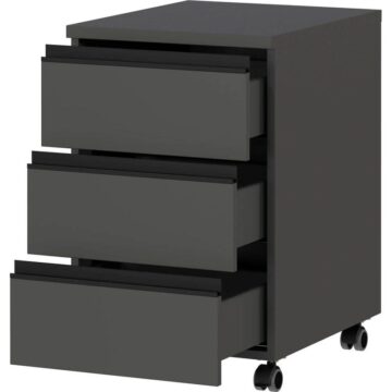 Pisarniški predalnik GERMANIA Bedano graphite, 3 predali, 40,0 x 50,0 x 63,0 cm je praktična in elegantna rešitev za urejeno pisarniško okolje. S svojo kompaktnostjo, premičnostjo in kvalitetno izdelavo je idealen za shranjevanje dokumentov, pisarniških pripomočkov ali drugih pomembnih predmetov.