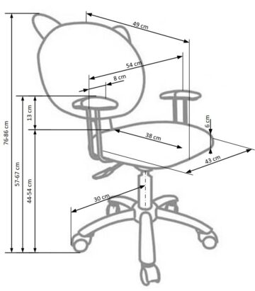 Otroški pisarniški stol Kitty je narejen iz ekološkega usnja roza barve. Stol vsebuje plinski mehanizem za dvig in spust. Dimenzije pisarniškega stola so: 54 x 49 x 76/86 cm. Teža: 11 kg Rok dobave je 3-45 dni.