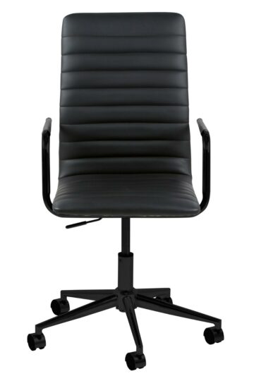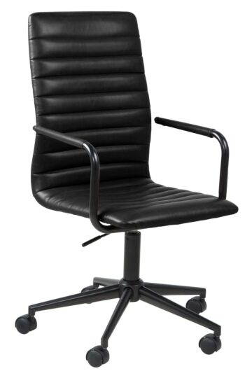 Pisarniški stol Winslow ima kromirano osnovo, ki vključuje plinsko dvigalo. Sedišče stola je iz poliuretana (imitacija usnja) in na voljo v črni barvi.