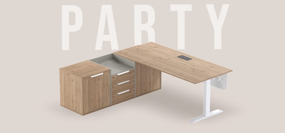 Direktorski pisarniški sestav Fun združuje sodoben dizajn, napredno ergonomijo in vrhunske materiale, kar ga postavlja med idealne izbire za vodstvene pisarne. Kombinacija naravne in svetlo sive (beton) barve s kovinskimi belimi detajli doda prostoru eleganco in funkcionalnost.