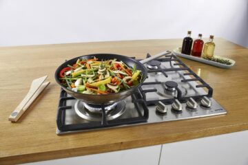 Material nosilnih plinskih rešetk je litoželezen, kuhališče pa vključuje tudi Wok gorilnik. Možna je uporaba G30/G31-28-30/37 tekočega plina, kuhališče ima nadziranje plina in je namenjeno za G20/20 naravni plin. Izvedba priključka je AC 230V, mere vgradne odprtine pa so 56 × 10 × 49 cm.