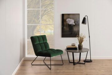 - Materiali: Vic tkanina v gozdno zeleni barvi, mat črno prašno lakirano jeklo (podnožje)