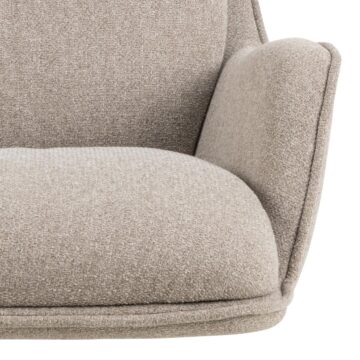 Počivalnik Bosley je zasnovan za udobje in sodoben stil, ki bo popestril vsak prostor v vašem domu. S širokimi naslonjali za roke in rahlo ukrivljenim sedežem, ta stol vabi k počitku in sprostitvi. Oblazinjen v strukturirani bež tkanini, ki je izdelana na osnovi recikliranih plastičnih steklenic, nudi prijeten in trajnosten občutek.