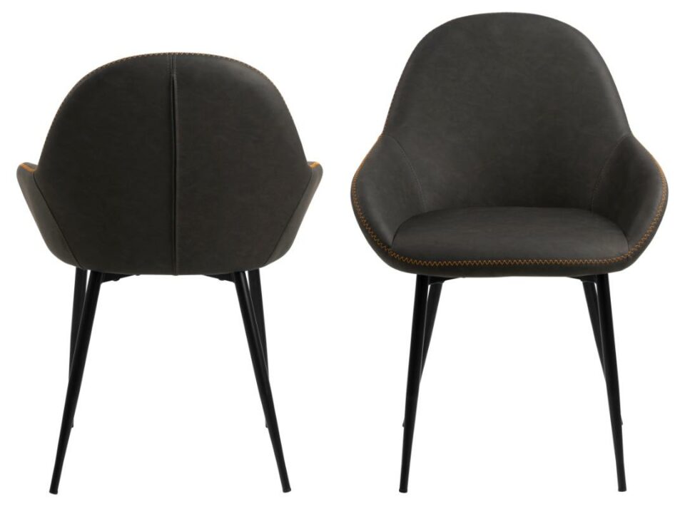 Jedilniški stol Candis je narejen PU usnja v temno sivi barvi. Njegovo podnožje je kovinsko in prašno obarvano v črno barvo. Tisto kar naredi počivalnik tako posebnim so oranžni okrasni živi, po robovih počivalnika. Dimenzije stola: 60,0 x 57,5 x 84,0 cm. Teža: 6,8 kg Stol Candis je delo danskega proizvajalca Actona z večletno tradicijo. Njihovo sodobno pohištvo visoke kvalitete navdušuje uporabnike po celem svetu