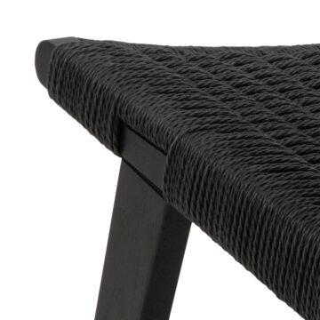 - Materiali: Lakirani hrastovi nogi v črni barvi z H-oblikovanimi povezavami in sedež ter hrbet iz črnih papirnih pletenin.