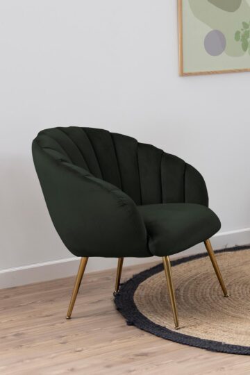 - Materiali: Vic tkanina v temno zeleni barvi, zlate brušene jeklene noge