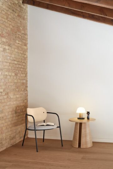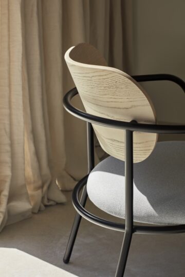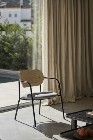 - Leseni detajli na naslonjalu, ki dodajo toplino in naraven videz.