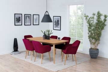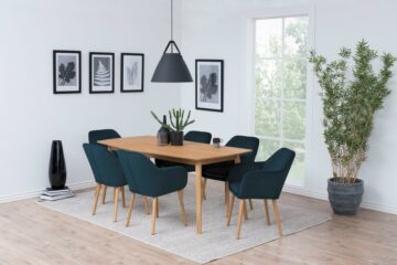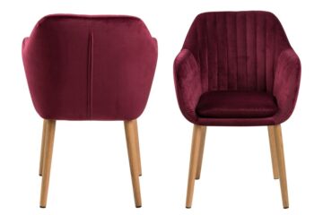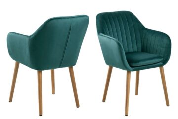 Jedilniški stol Emilia je izdelan predvsem za vaše udobje in kvalitetno preživet čas v njemu. Tokratna serija je izdelana iz žametne tkanine in na voljo v kar 6 barvah: gozdno zelena, prašno roza, temno siva, bordo, steklenično zeleno in temno modra. Prav vsi modeli pa imajo kot posebnost okrasne vzdolžne šive, ki se nahajajo znotraj sedeža. Podnožje stola je izdelano iz kvalitetnega hrasta, tretiranega z olji. Dimenzije stola: 57,0 x 61,0 x 83,0 cm Teža: 9,8 kg Stol Emilia je delo danskega proizvajalca Actona z večletno tradicijo. Njihovo sodobno pohištvo visoke kvalitete navdušuje uporabnike po celem svetu