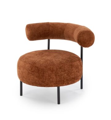 Počivalnik Hazard v cimet barvi (blago HAGA#44) združuje sodoben slog z udobjem in kakovostjo. Njegovo oblazinjenje iz kakovostnega blaga HAGA je podprto s črnim kovinskim okvirjem s prašnim premazom, ki zagotavlja stabilnost in trajnost.
