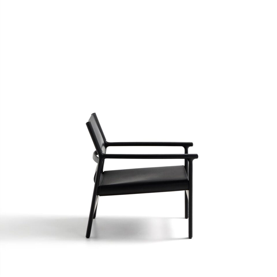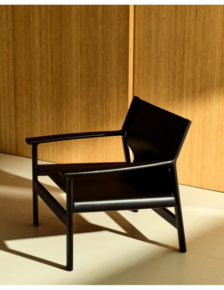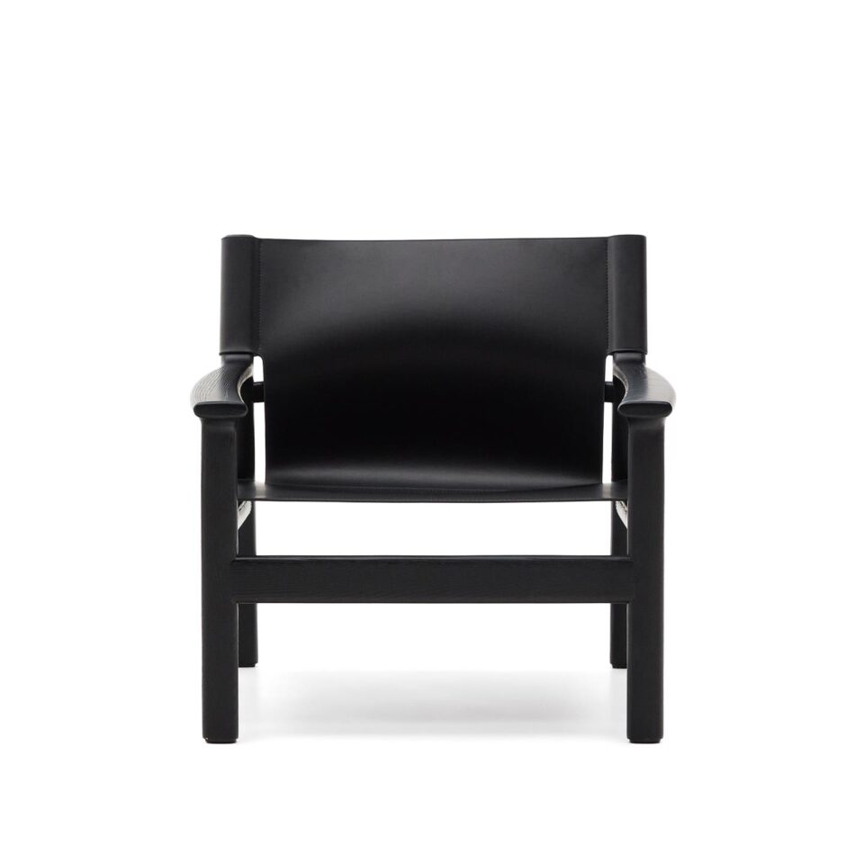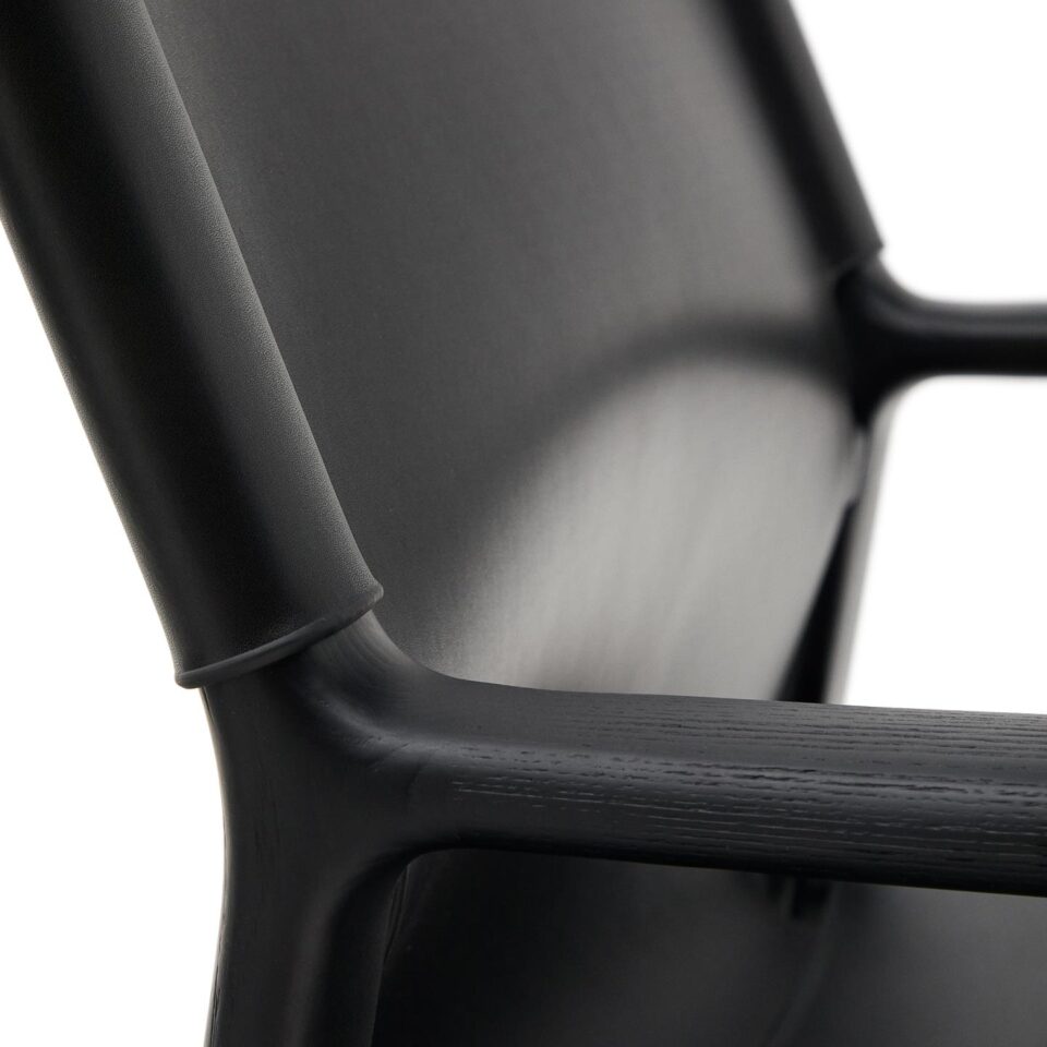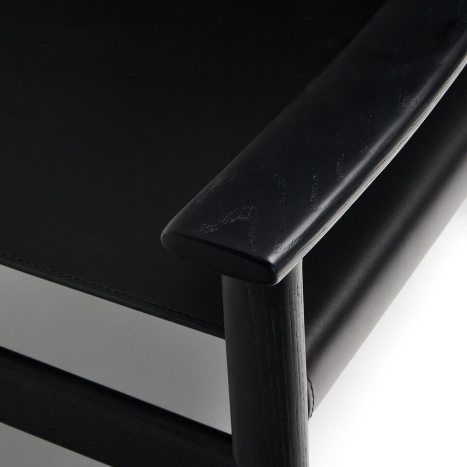 Ogrodje iz masivnega jesena s FSC™ 100-odstotnim certifikatom potrjuje odgovorno pridobivanje lesa iz nadzorovanih gozdov ter zagotavlja stabilnost in toplino materiala. Sedež iz recikliranega usnja je izbran zaradi odpornosti proti obrabi in ognju ter omogoča čvrsto, telesu prilagojeno sedenje. Dobavitelj usnja je certificiran s strani Leather Working Group z oceno LWG Gold, kar potrjuje trajnostne postopke v proizvodnji. Za dodatno zaščito tal so na nogah nameščeni zaščitni čepi, ki poudarjajo uporabno vrednost izdelka brez kompromisov pri dizajnu.