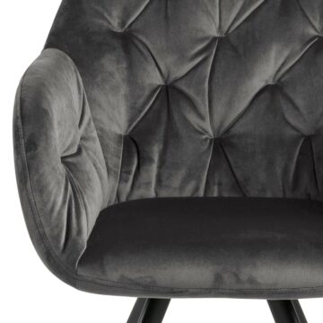Atraktiven počivalnik Lola s sedežem oblečenim v kakovostno žametno tkanino, prikazuje stičišče elegance in prefinjenosti. Kovinsko podnožje, prašno obarvano v črno barvo, izhaja iz središča sedišča katerega krasijo okrasni šivi v retro stilu. Počivalnik je dostopen v temno sivi, prašno roza in gozdno zeleni barvi.