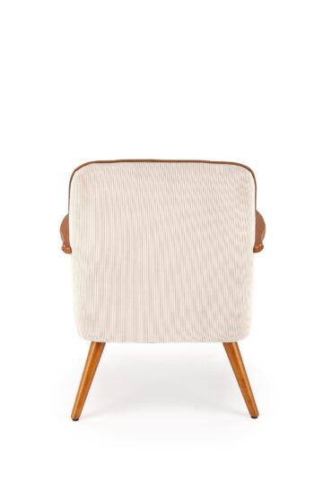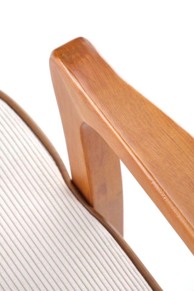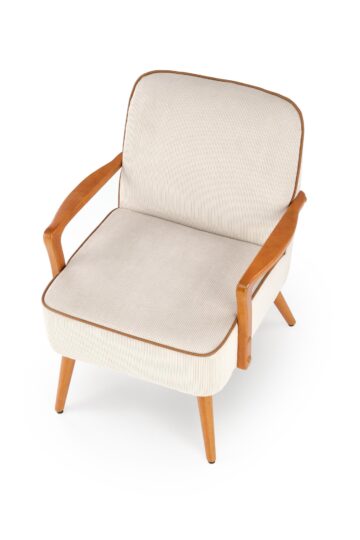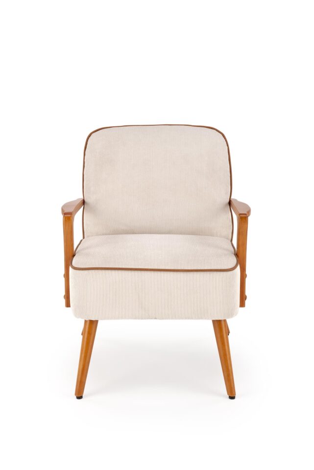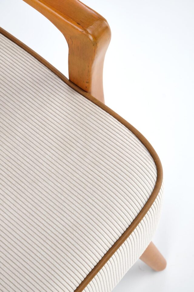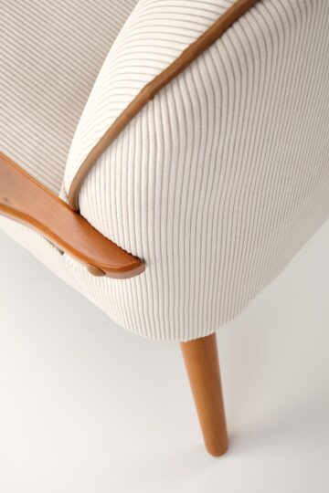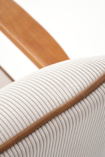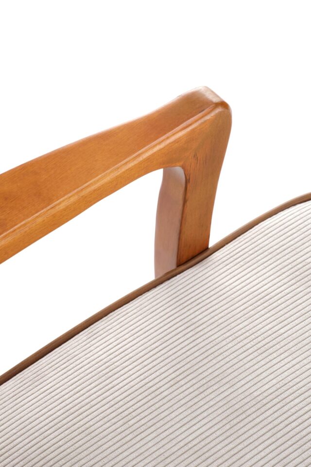 Eleganten in udoben počivalnik Pastore se odlikuje z retro obliko in prijetnimi toplimi barvami. Kakovostna bež tkanina se odlično poda svetlem lešnikovem odtenku. Ogrodje je izdelano iz masivnega lesa kavčukovca.
