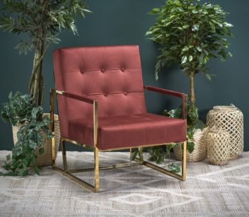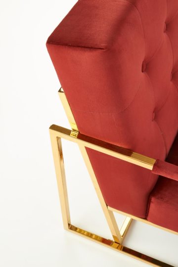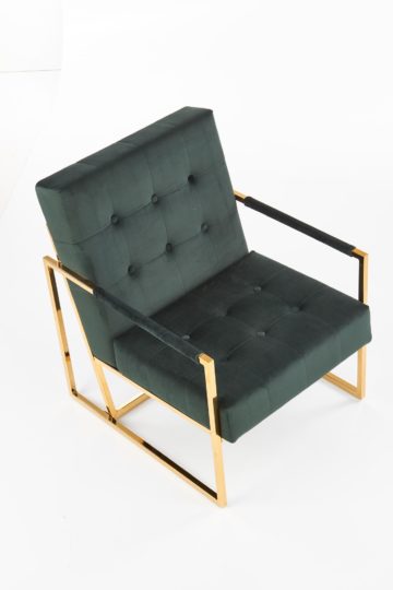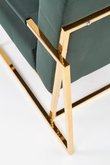 Noge in ročaji počivalnika so iz kromiranega jekla v zlati barvi. Naslon in sedišče sta oblečena v žametno tkanino, ki je izredno prijetna na otip. Odlikuje se s kakovostno izdelavo in je odličen dodatek dnevni sobi – poskrbel bo za udoben počitek.