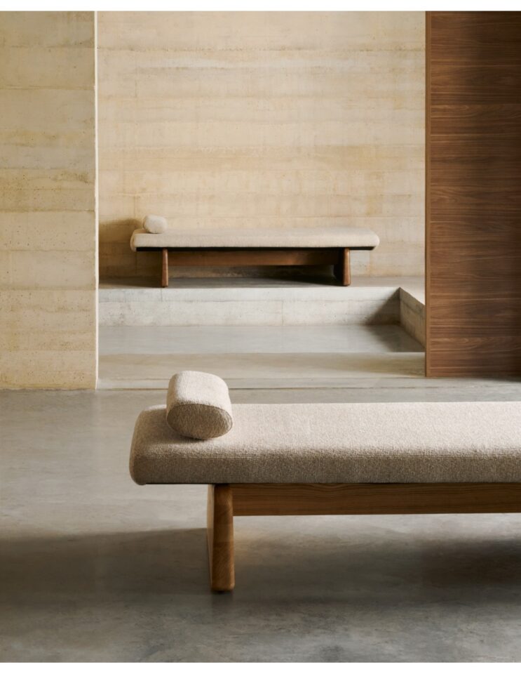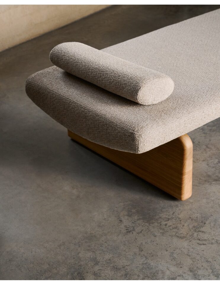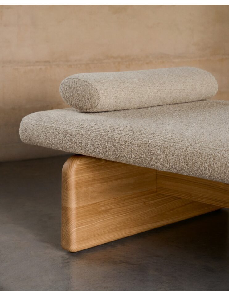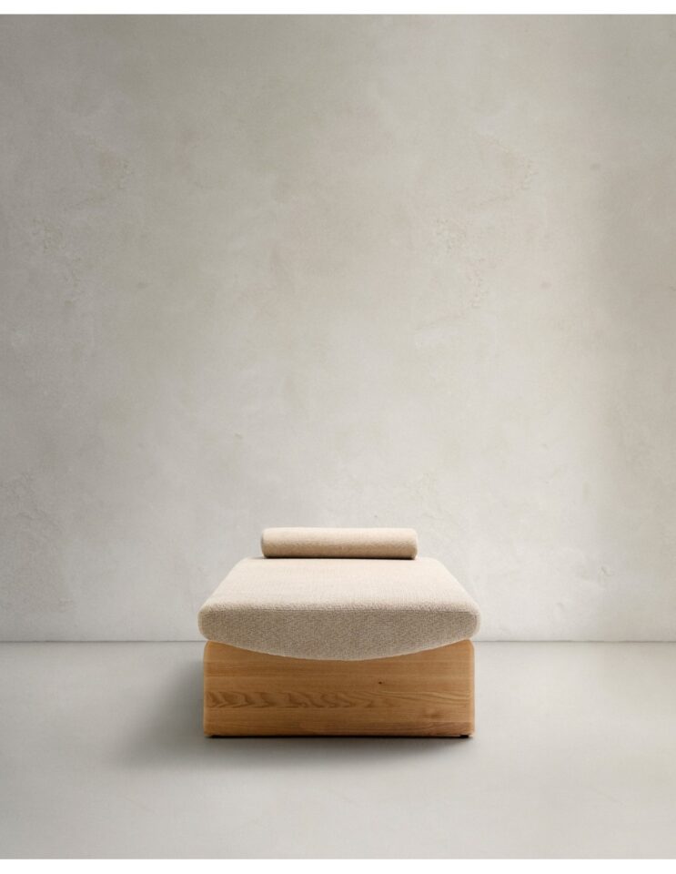 Topaz je zasnovan z navdihom organskih linij in mehkih krivin, ki ustvarjajo umirjen, tekoč videz ter v prostor prinašajo občutek sproščenosti. Oblazinjenje iz debelega chenilla v nevtralnem bež odtenku daje kosu toplino in prijetno teksturo, zato je primeren za različne stile interierja – od sodobnih do bolj umirjenih ambientov za počitek in umik. Masivna konstrukcija iz jesena z FSC™ certifikatom zagotavlja stabilnost in trajnost, tkanina z okoljskim certifikatom pa potrjuje odgovorno proizvodnjo. Srednje trda sedalna površina omogoča udobno uporabo, vključena blazina in ležišče pa povečata funkcionalnost.