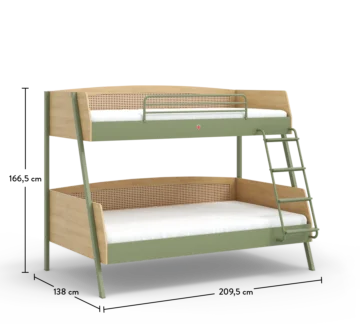 - Zgornje ležišče: Dimenzije 90×200 cm so idealne za otroke, stare 6 let in več.