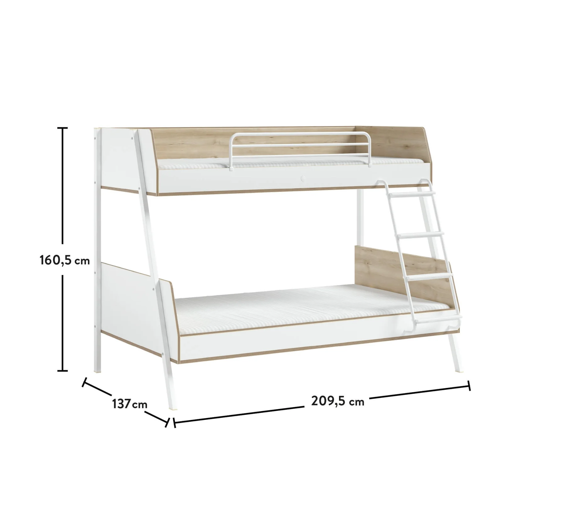 Maksimalna nosilnost posameznega spalnega prostora je 130 kg, z notranjimi dimenzijami zgornjega ležišča 90×200 cm in spodnjega ležišča 120×200 cm. Široki pograd je zaradi svoje trdne strukture primeren za večletno uporabo.