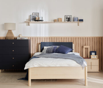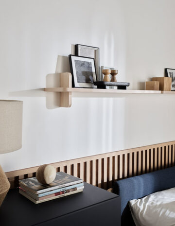 Idealna je za namestitev nad komodo ali posteljo iz iste kolekcije, saj njene dimenzije zagotavljajo optimalen izkoristek prostora in harmoničen videz. Uporabite jo lahko samostojno ali jo kombinirate z ozko polico OMM, s katero ustvarite zanimivo in funkcionalno stensko kompozicijo.