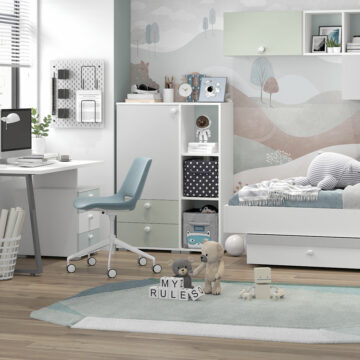 Stoječi poličnik je obdelan z UV lakom, ki nudi subtilen mat učinek v nežni beli barvi, kar odraža sodoben pridih in se zlije z vsakim prostorom. Hrbtna stran police je obdelana z UV lakom, pri čemer lahko izbirate med barvami iz bogate palete ali pa se odločite za lesni dekor v tonu pacifiškega oreha.
