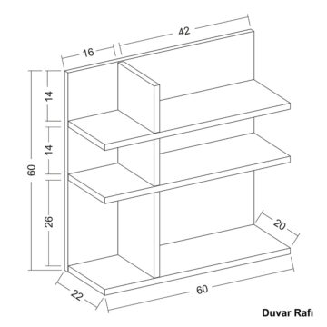 - Dimenzije: Širina 60 cm, globina 22 cm, višina 60 cm. Kompaktne dimenzije poličnika zagotavljajo prilagodljivost pri namestitvi in optimalno izrabo prostora.