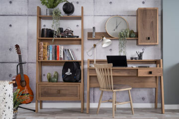 Zidna omarica s polico iz kolekcije Ratan je izjemen dodatek k mladinski sobi, ki združuje funkcionalnost z elegantnim naravnim dizajnom. S svojo naravno barvo lesa in dekorativnimi vstavki ratana ta zidna omarica prinaša občutek topline in naravne lepote v prostor, hkrati pa ponuja praktično rešitev za shranjevanje.