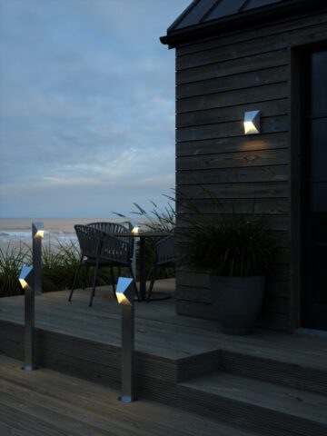 Pontio 15 je moderna zunanja svetilka, ki se ponaša s svojim racionalnim arhitekturnim oblikovanjem, zasnovanim s strani danskega oblikovalskega dvojca Says Who. Njena geometrijska oblika prinaša sodoben in hkrati brezčasni slog v vaš dom, medtem ko nagibana senca zagotavlja edinstven in zanimiv izgled z vseh kotov.