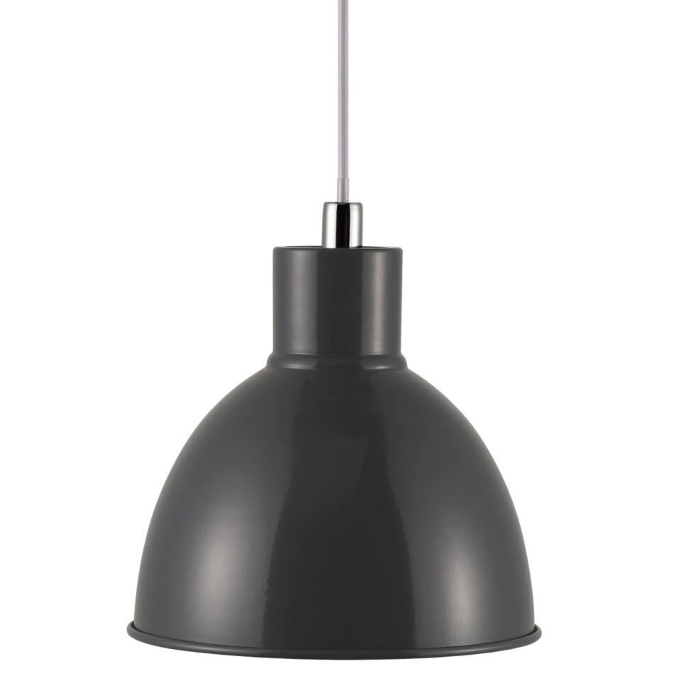 Svetilka Pop blagovne znamke Nordlux združuje eleganco in preprostost. Izdelana je iz kovine in se ponaša z visoko sijajno antracitno površino. Odlično se ujame nad jedilno mizo ali v kuhinji, kjer prinaša moderen pridih.
