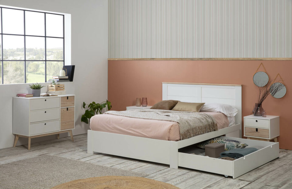 Masivna postelja Gabi za ljubitelje skandinavskega stila.